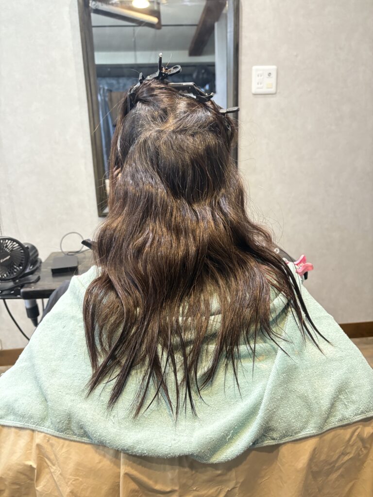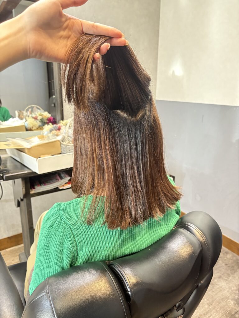 今回は、内側の髪のうねりの広がりと分け目の割れが気になるというお悩みのお客様。